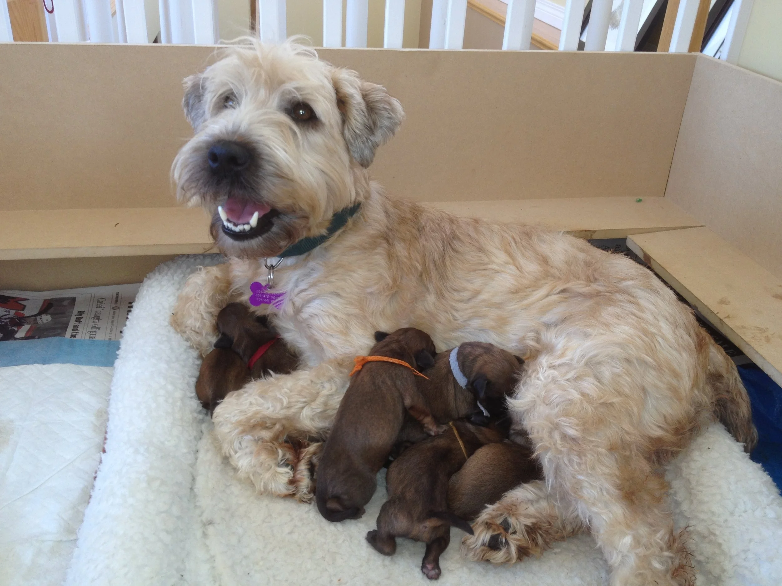 Our rescue girl Keeva surprised us with the puppy mill bonus pack, delivering six surprise puppies! Kelsey wasn’t sure about this new development, and had to check things out.